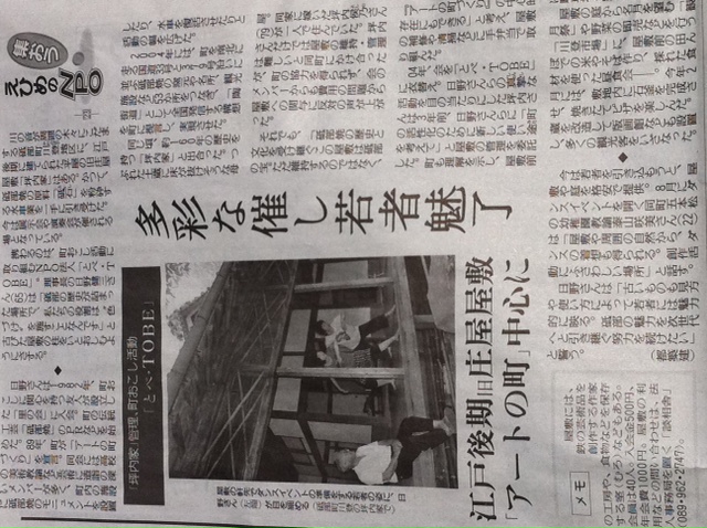 『精霊展』と、耳寄り情報 2011 2011年08月01日 先日7月最後のミーティングで坪内家に集まりました。坪内家ではちょうど8/2から開催中の"「奥砥部・真夏の物語」-若者たちが見た!水車庄屋の精霊たち展-"通称『精霊展』の搬入作業をしていました。『精霊展』とは、いまは誰も住まなくなった屋敷に隠れていた精霊たちが姿を現した!というテーマで、2年前から毎年夏に開かれている展覧会のことです。展示作業を見学しながら、坪内家という場所自体が持っている強さを再確認。普通の美術館やギャラリーで見せるような作品ではその場所も作品も生きてきません。工夫して展示されているものはその分の見ごたえがありました!そこにあるものの魅力も、イベントのおもしろさも、両方をうまくみせられる様なものを目指し一段と気合の入ったとべぶんプロジェクトメンバーでした。精霊展は8月7日(日)までやっています。時間帯は10時から17時、最終日は15時までです。水車庄屋にどんな精霊を見たのか!こちらもぜひ見に行ってみてください。☆そして耳寄り情報☆坪内家にある古本を引っ張り出してきて古本市も開催することになりました!屋根裏部屋に眠れる本たちを大公開です。面白いものがありそう・・・!大きな楠、"くすくす様"のそばに流れる川はすごく気持ちいい。坪内家に来る際はぜひ水遊びの出来る格好で!!