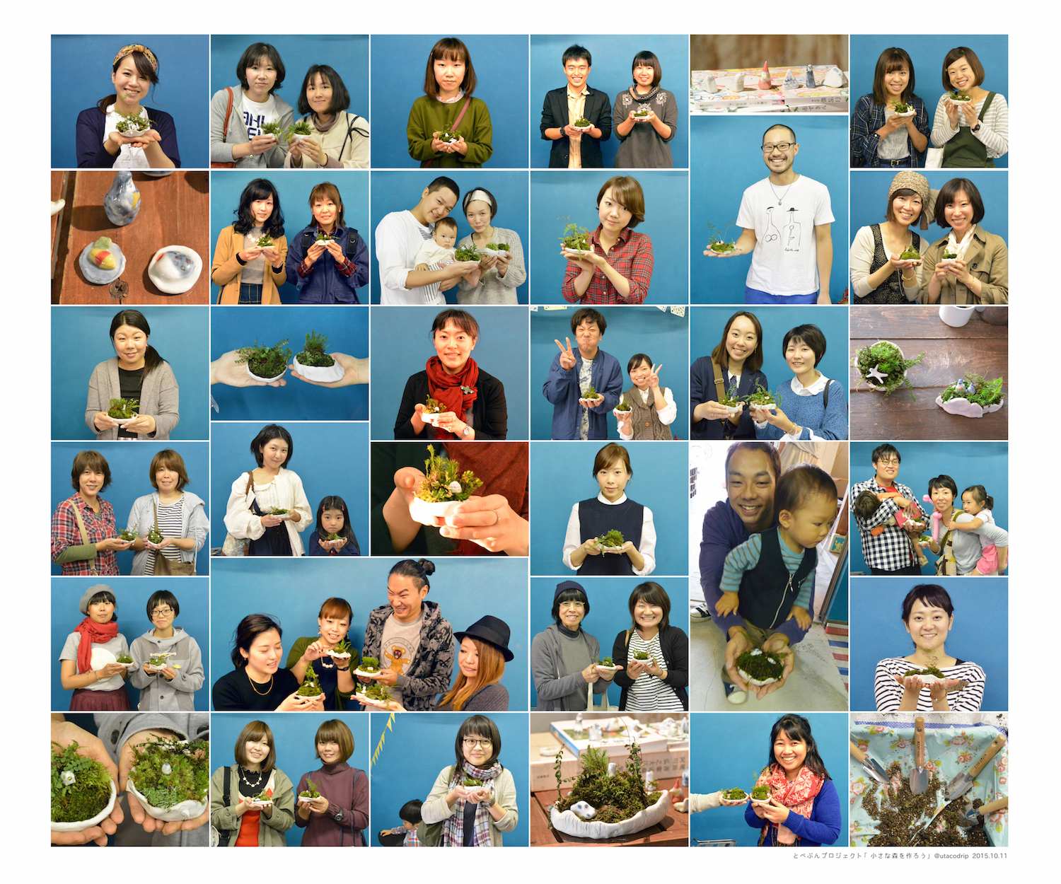 『ちいさな森を作ろう』ワークショップ無事終わりました! 制作日記 2015年10月13日 utacodripで開催した『ちいさな森を作ろう』ワークショップが無事終わりました。初の松山でのワークショップでしたが、本当にたくさんの方に来ていただくことができました。(予備で作ったうつわもなくなるくらい!!)とべぶんプロジェクトオリジナルの砥部焼のうつわに当日の朝砥部でとれたての苔!とべづくしです!土居亜伊先生のアドバイスや苔豆知識を聞きながら思い思いの山を作っていきます。苔にもいろいろあります。背の高い苔、トゲトゲした苔、プチプチした苔、絨毯みたいな苔、、、パッチワークみたいに土の上に乗せていきます。珍しい苔発掘を発見した時の喜び…!苔コーナーの前から動けなくなる人続出です。 完成した森の上にはとべぷろメンバーオリジナルのオブジェを置くこともできます。好きな動物を置いたり家や車を置いたり、自分そっくりのオブジェを見つけた方も! ちなみに会場を貸してくださったutacodripさんは今回のイベントのために森色のスコーンを用意してくれていました。常連の私もまだ2度しかお目にかかれていないレアスコーンです!抹茶とホワイトチョコです!食べれた方はラッキー!〜完成した森のご紹介〜人魚を乗せるとなんだか海の中にも見えますね。豚とキノコ!愛らしいです。恐竜と・・・猫!時空を超えたコラボレーションも可能な自分だけの森です!ワークショップ後、講師をしてくれた亜伊先生もひとつ!アプローチ付きのうつわを選び、あえて森にオブジェを置かないという技ですね。平地と山も見事に表現されています。さすが先生!個展後かけつけた福岡麻子もつくりました!これは…草野球ですね!みなさんの森が枯れずに育って行きますように!ありがとうございました! 重松