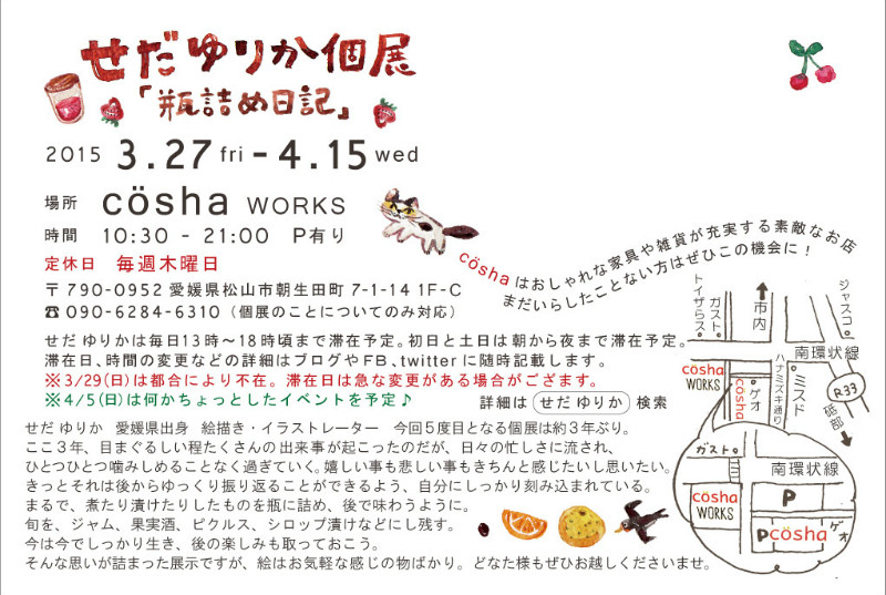 そんなせだゆりか『瓶詰め日記』の会場で、とべぶんプロジェクト『森を運ぶ』のオープニングアクトとも呼べるイベントを開催します!