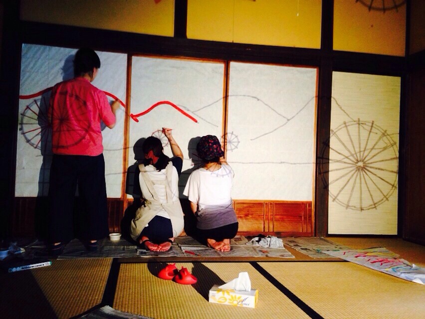 初合作!障子絵 2014 2014年08月16日 とべ分プロジェクトのみんなで、障子絵を制作しました!外からも見えるところにずらっと並ぶ障子、、、。ここに今回のテーマきっかけになった砥部焼の土を作る水車や山、川をモチーフに描きましたよ。 こちらの絵の具や筆はこのプロジェクトに協力してくださっているARTCOREMATSUYAMAさんに提供していただきました!ARTCOREMATSUYAMAの皆様、ありがとうございました!大切に使わさせていただきました〜! 複数人で一つの物を作ることは、思っていたよりもずっと大変で苦戦しましたが、いろんなアイデアが出た中で出て来た物にはなかなか揺るぎないものがあると感じました。今年は仲間との連携も個人個人もパワーアップしてます!開催まであと少し!出来上がりはお楽しみに…! PR